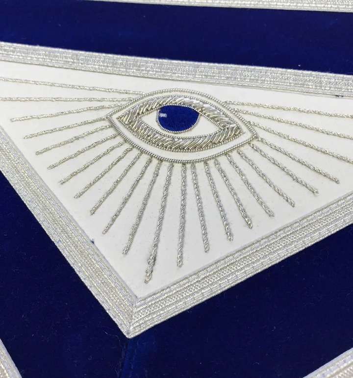 Master Mason Blue Lodge Apron – Navy Blue & White Silk Threads Hand Embroidery