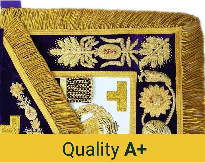 Grand Master Blue Lodge Apron – Purple Gold Hand Embroidery