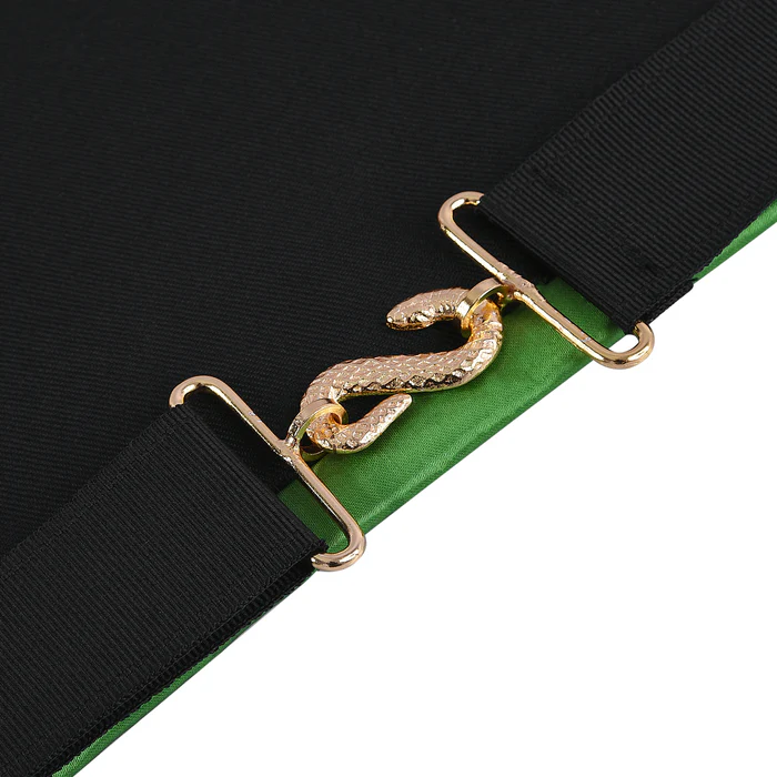 This 5th degree apron is designed for Scottish Rite members, featuring green silk and machine embroidery. The adjustable belt and premium materials make it a valuable addition to your Masonic regalia.