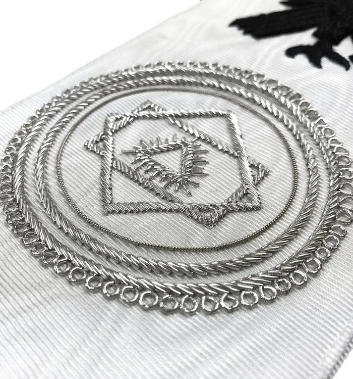 The Red Cross of Constantine Commander Sash is a very high-quality piece of Masonic regalia, representing the esteemed rank of Commander within the Red Cross of Constantine. This sash features a beautiful white ribbon with extra black fringe, finest quality handmade embroidery, and a stitched metal hook for attachment to the collar.