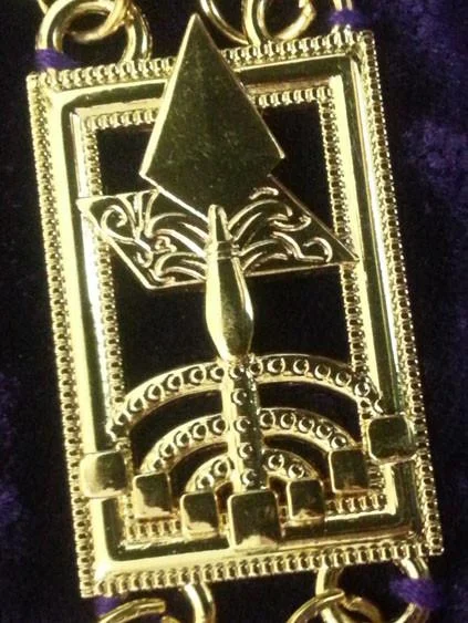 The Council Chain Collar features a stunning combination of gold plating and blue velvet backing. This prestigious piece is designed for members of the Masonic Regalia Cryptic Mason, Royal & Select and is of excellent quality.