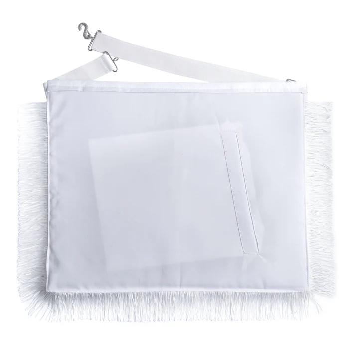 This Deputy Grand Master Blue Lodge Apron is an esteemed item for members of the Masonic Order, representing one’s affiliation with distinction. This apron is made of white material accentuated by the white braid and rayon fringe. The rayon side tabs with fringe reinforce the traditional style of this apron.