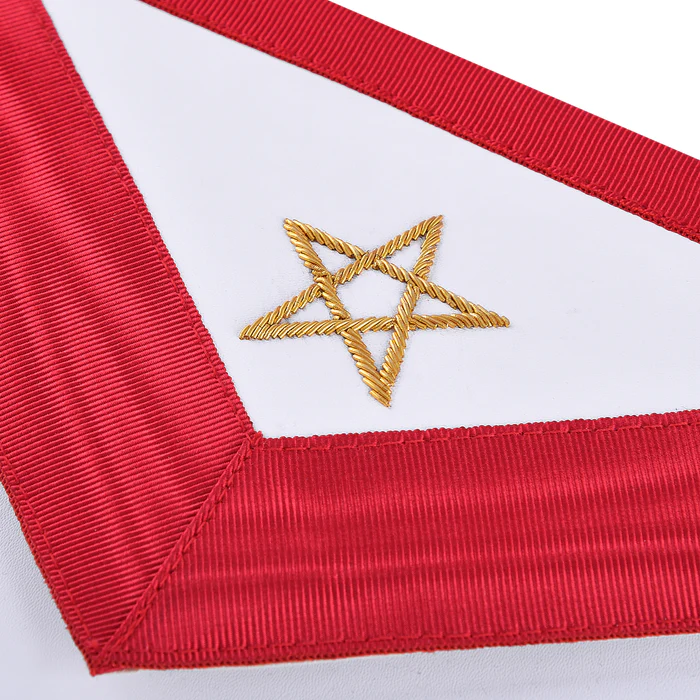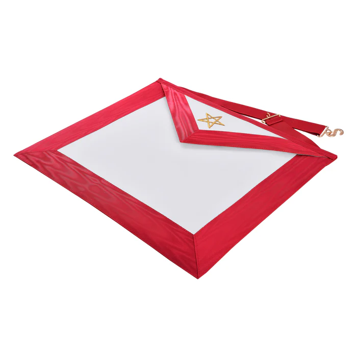 Excellent Master Allied Masonic Degrees Apron – Red Moire Ribbon with Embroidered Gold Pentagram