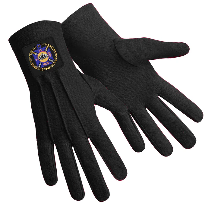 These Knights Templar Commandery Gloves are made from high-quality cotton with a classic black color, making them the perfect accessory for any Masonic occasion. The black patch, adorned with meticulous machine embroidery, showcases a sophisticated and intricate design with a purple emblem. With impeccable stitching and a full-finger fit, these gloves offer exceptional comfort.