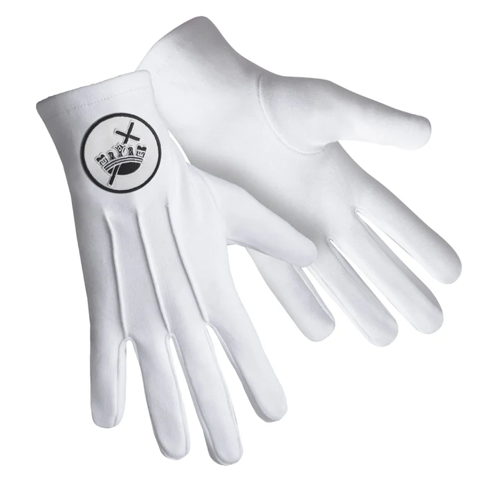Knights Templar Commandery Gloves – Pure White Cotton with White & Black Patch