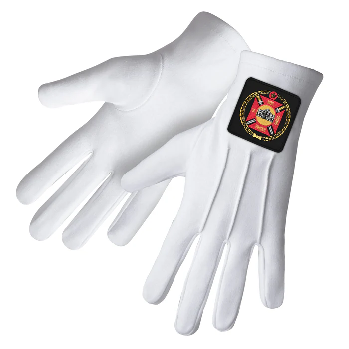 These Knights Templar Commandery Gloves are made from high-quality cotton with a classic white color, making them the perfect accessory for any Masonic occasion. The red & black emblem, adorned with meticulous machine embroidery, showcases a sophisticated and intricate design. With impeccable stitching and a full-finger fit, these gloves offer exceptional comfort.
