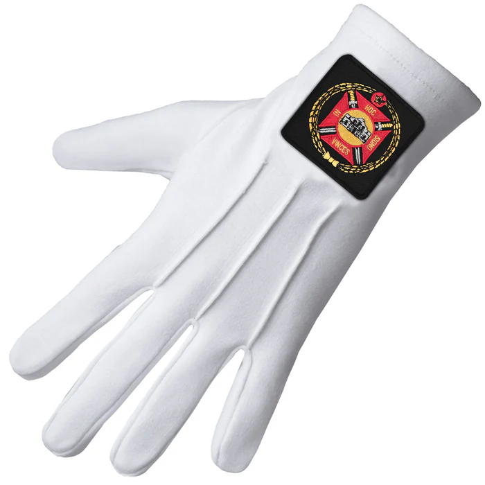 Knights Templar Commandery Gloves – White Cotton with Red & Black Emblem