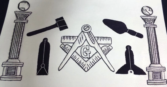 Master Mason Blue Lodge Apron – Navy Blue & White Silk Threads Hand Embroidery