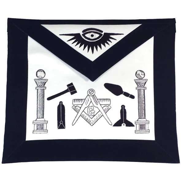 Master Mason Blue Lodge Apron – Navy Blue & White Silk Threads Hand Embroidery
