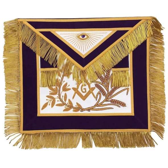 Master Mason Blue Lodge Apron – Purple Velvet with Gold Fringe Hand Embroidered