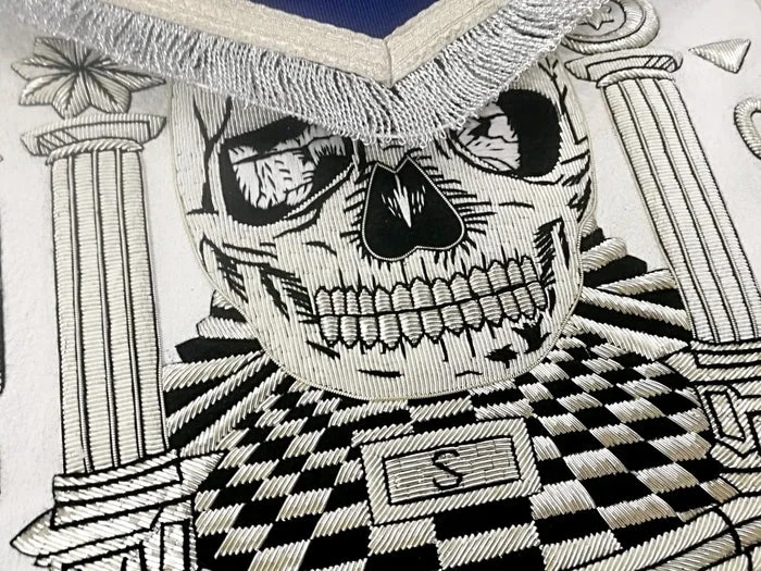 Master Mason Blue Lodge Apron – Skull Pillars Masters Carpet Silver Embroidery