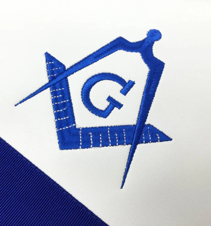 Master Mason Blue Lodge Apron – White & Navy Blue Ribbon