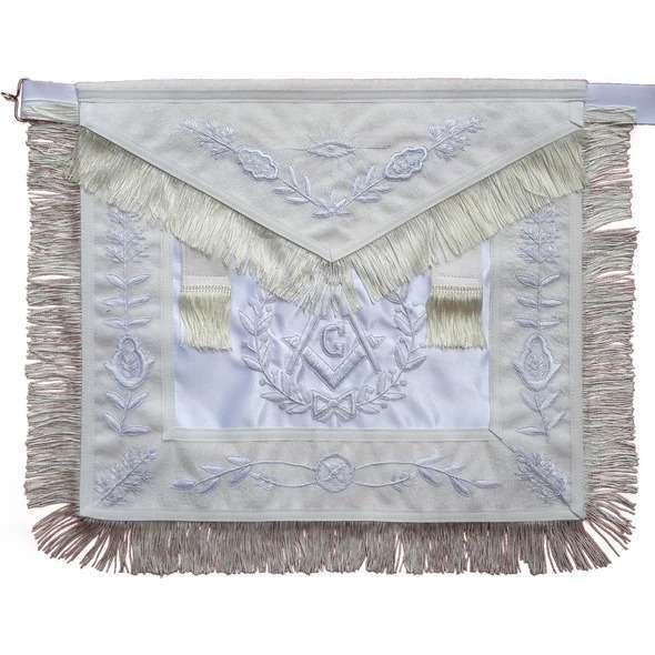 - 1.5 inch wide white rayon fringe all around apron and flap