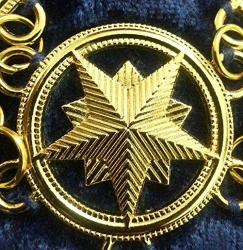 This Master Mason Blue Lodge Chain Collar is a high-quality Masonic regalia accessory, featuring a gold plated square and compass on a blue velvet backing. It is an excellent addition to your Masonic attire.