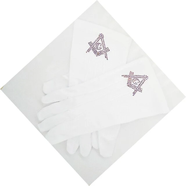 Enhance your Masonic attire with these Master Mason Blue Lodge Gloves. Made from high-quality polyester with a stylish printed Square and Compass G Rhinestone design, these gloves are the perfect accessory for any Masonic occasion. The intricate rhinestone design ensures a sophisticated and eye-catching look.