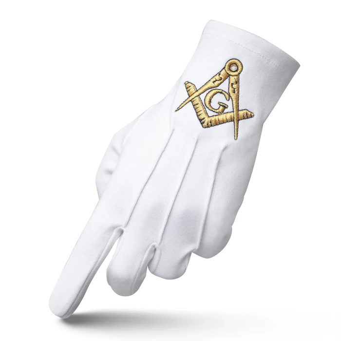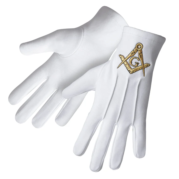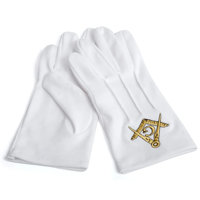 Master Mason Blue Lodge Gloves – Pure Cotton Gold Square & Compass G