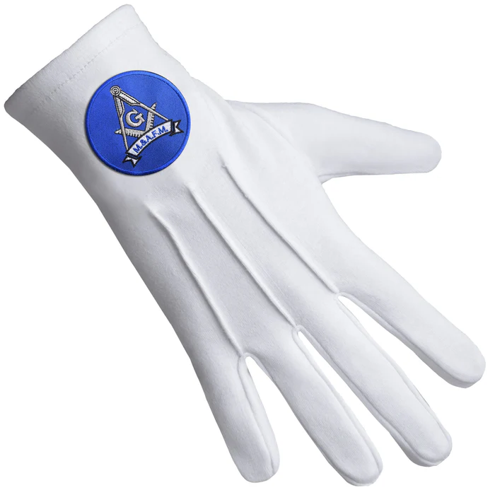 Master Mason Blue Lodge Gloves – Pure Cotton with Blue Round Patch