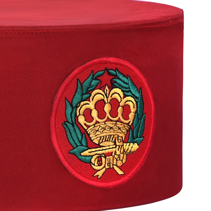 The Order of the Amaranth Crown Cap is a distinguished Masonic headwear option crafted from premium red silk, offering a sleek and professional appearance.
