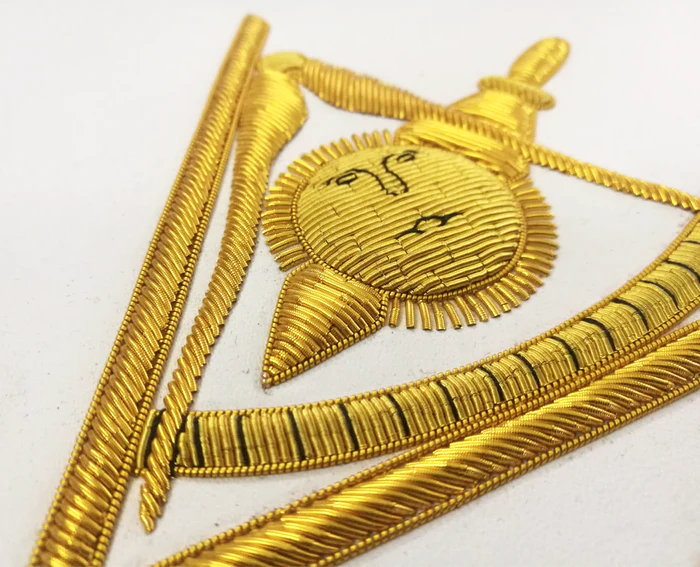 This Past Illustrious Master Council Apron is a prestigious item for members of the Masonic Order, representing one’s affiliation with distinction. Made from high-quality materials, this apron features nice golden bullion and silk thread hand embroidery on a purple background, and a matching purple polyester fabric lining with a glove pocket.