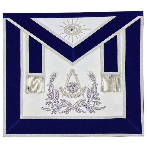 Past Master Blue Lodge Apron – Blue Velvet with Silver Hand Embroidery