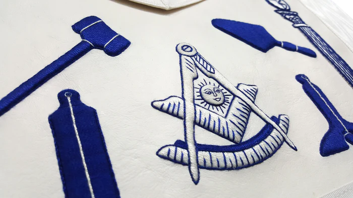 Past Master Blue Lodge Apron – Hand Embroidered Royal Blue & White Silk Thread