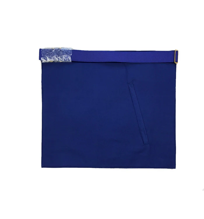 This stunning Past Master apron features a beautiful royal blue design with hand-embroidered white silk threads, made from high-quality materials. The apron boasts a royal blue velvet border, blue polyester lining with a pocket, and an adjustable waist belt. A truly exceptional addition to your Masonic regalia.