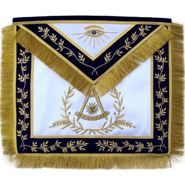 Past Master Blue Lodge Apron – Navy Blue with Gold Hand Embroidery & Fringe Tassels