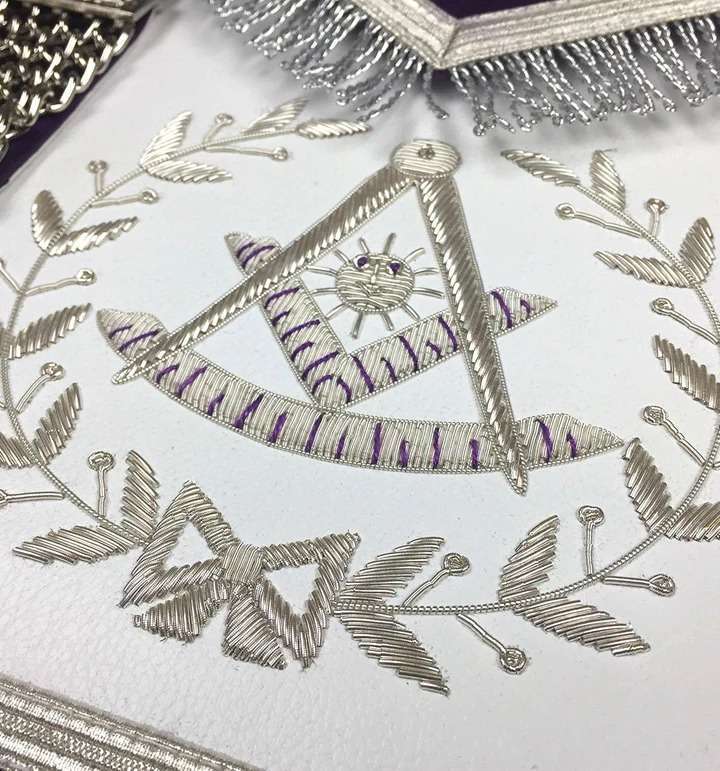 Past Master Blue Lodge Apron – Royal Purple Velvet Hand Embroidery