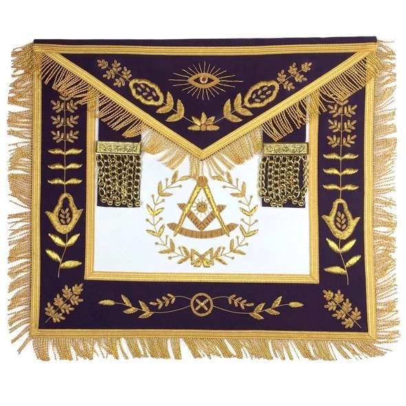 Past Master Blue Lodge Apron – Royal Purple Velvet with Gold Fringe