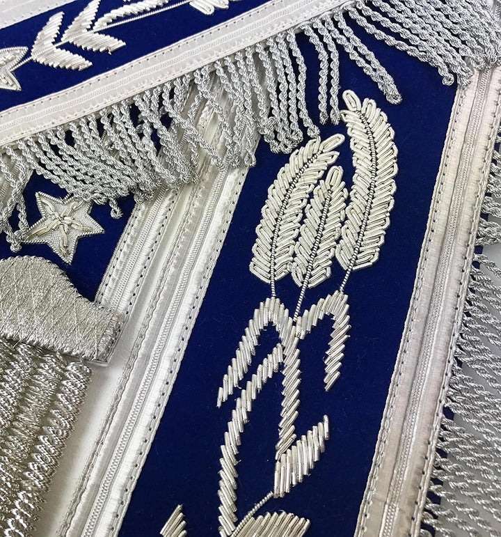 Past Master Blue Lodge Apron – White & Blue Hand Embroidery