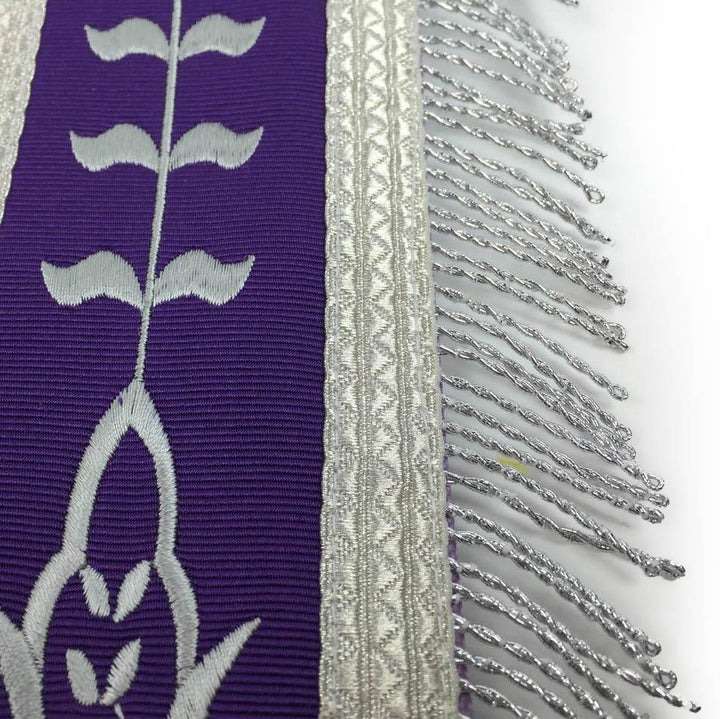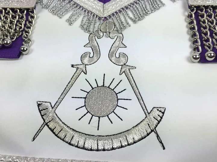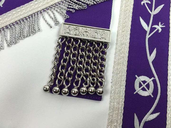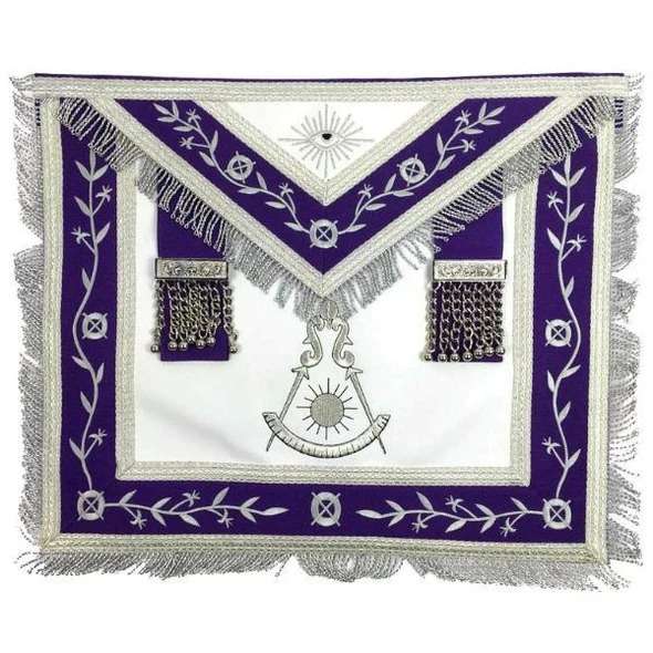 Past Master Blue Lodge Apron – White & Purple with Silver Machine Embroidery