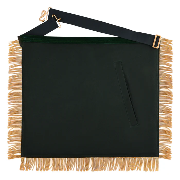 Past Sovereign Grand Master Allied Masonic Degrees Apron – Forest Green Velvet with Gold Fringe
