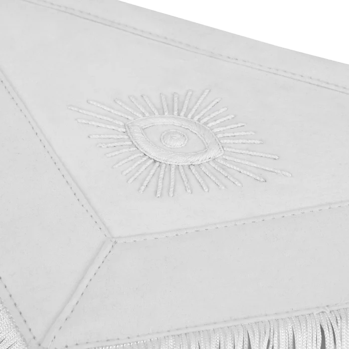 This Senior Warden Blue Lodge Apron is an esteemed item for members of the Masonic Order, representing one’s affiliation with distinction. The apron is made on white satin with hand embroidery, white fringe, and side tabs, showcasing its traditional style.