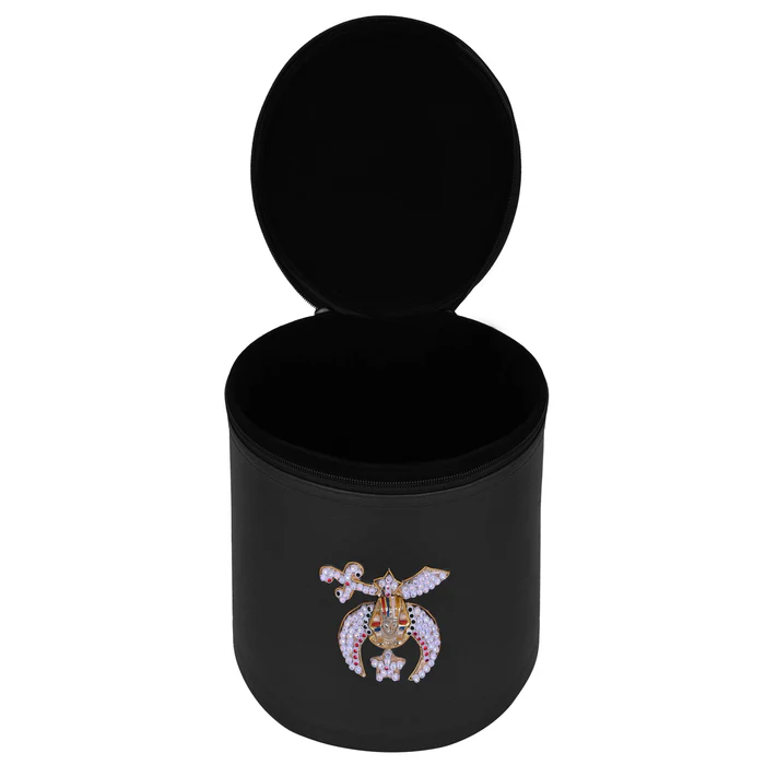 This Shriners Fez Case is the perfect solution for protecting and transporting your Shriners Fez. Made from durable black synthetic leather, it not only provides a premium look but is also easy to clean and maintain. The case has a zip opening and a solid metal handle for added security and convenience when transporting your Fez. The machine embroidery colorful Rhinestones featuring the Shriners emblem adds a unique and elegant touch to the overall design. If you’re in search of a high-quality, attractive, and protective case for your Fez, this black Shriners Fez Case is the ideal choice for you.
