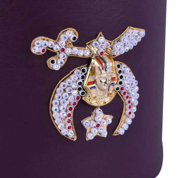 This Shriners Fez Case is the perfect solution for protecting and transporting your Shriners Fez. Made from durable purple synthetic leather, it not only provides a premium look but is also easy to clean and maintain. The case has a zip opening and a solid metal handle for added security and convenience when transporting your Fez. The machine embroidery colorful Rhinestones featuring the Shriners emblem adds a unique and elegant touch to the overall design. If you’re in search of a high-quality, attractive, and protective case for your Fez, this purple Shriners Fez Case is the ideal choice for you.