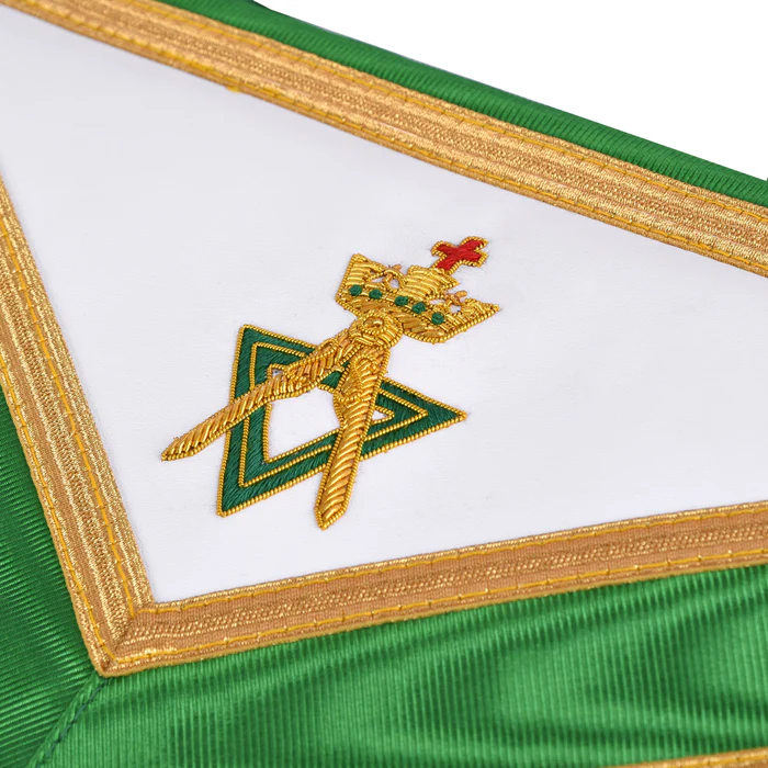 Sovereign Master Allied Masonic Degrees Apron – Green Ribbon with Gold Trim & Fringe