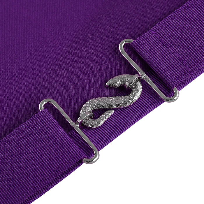 This Superintendent Allied Masonic Degrees Apron features a purple ribbon border and a practical glove pocket, making it suitable for any Masonic occasion or ceremony.