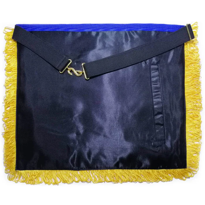 This Worthy Patron apron is designed for Masonic Order of the Eastern Star members, featuring stunning gold and silver bullion wire hand embroidery on heavy white satin and navy blue borders. The adjustable belt and premium materials make it a valuable addition to your OES regalia.